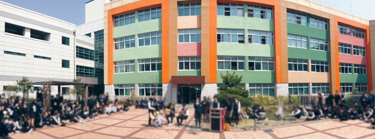 So apparently some of the kids have this little band which is entirely student led and they sometimes preform during the lunch hour. I could have died from how cute it was. My co-teacher came up to me and was like, “oh hey there’s going to be a little performance during lunch.” I was not at all expecting a whole band and for the entire school to come out into the courtyard to watch. And I also thought this was a good picture to show a little bit of what Korean schools look like, incase you’re curious.)