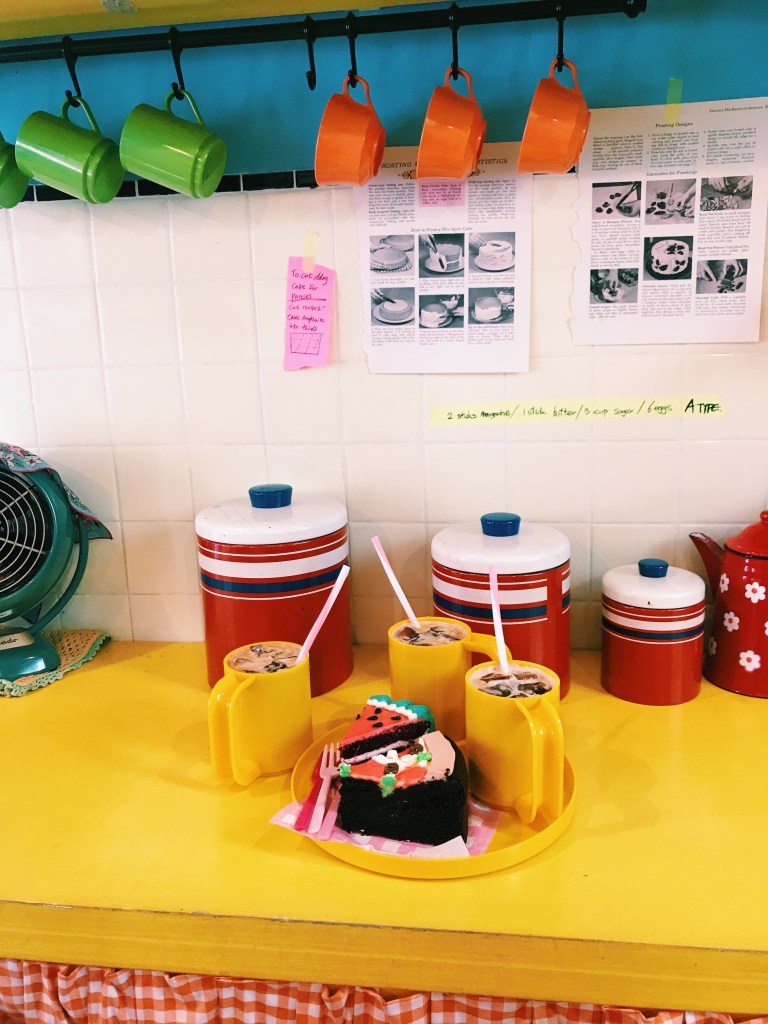 This place is popular for mainly two reasons. Their cakes, which are super cute and delicious, but also their aesthetic. Inside everything looks like it came from a child’s room in America in the 70’s. All the colors are super bright and playful and the whole place is decorated with little toys and knickknacks.