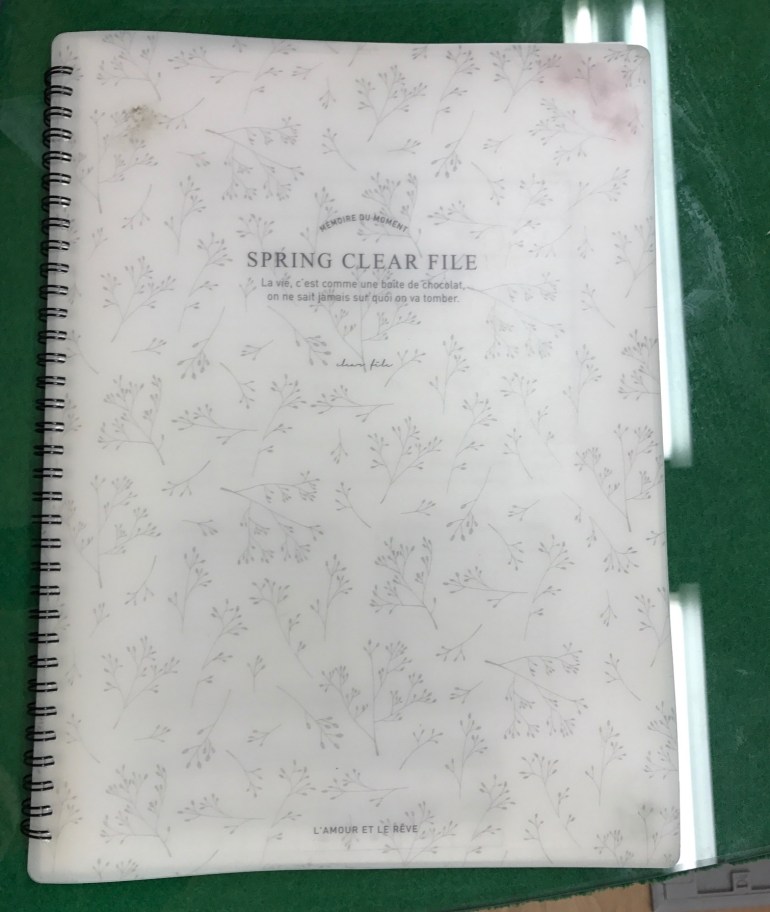 The first thing is my notebook. Well kind of notebook. It’s plastic and spiral bound but instead of having paper pages in the inside, it just has plastic paper sleeves. I use this to keep all of my more big picture documents together. I have my class schedule, the academic calendar for the whole semester, a map of the school, my lesson plan schedule, and currently a bunch of random rubrics from the speaking tests last semester.