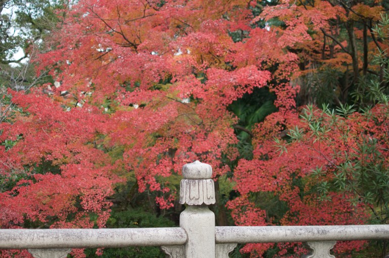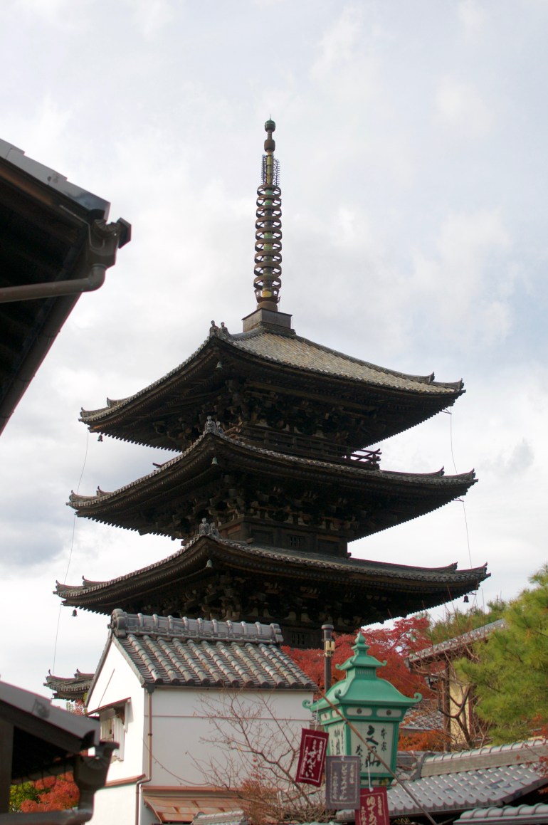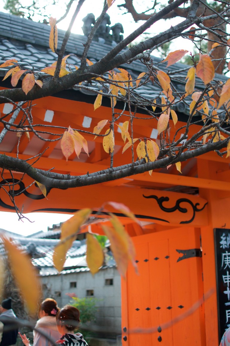 We weren’t sure of exactly what we wanted to see so we set off walking in the direction of a certain temple a ways away. Our main goal in visiting Kyoto this time of year, was to see as much of the beautiful fall leaves as possible. It turned out that path put us perfectly in the way of tons of different places where we could do just that. The first place we stumbled across was right past our hostel.