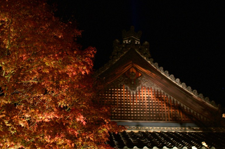 Unbeknownst to us Shoren-in Temple does a show in late November where they light up all the amazing fall foliage. We had no idea what we were walking into after paying our five dollars but for both of us, it was immediately worth the entire trip. Our exhaustion was soon forgotten.