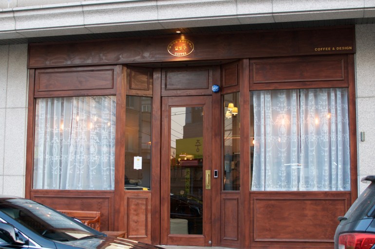 Moon Banngu Coffee in Galmadong 갈마동 has a really unique kind of European vintage aesthetic. Even as you approach it from the street there’s no mistaking the dark wooden front that stands out next to all the other grey Korean style buildings around.