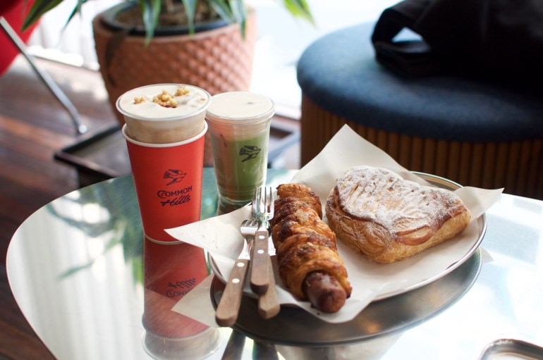 My friend got a sausage pastry and the matcha latte which ended up being tiny but she said it tasted good!