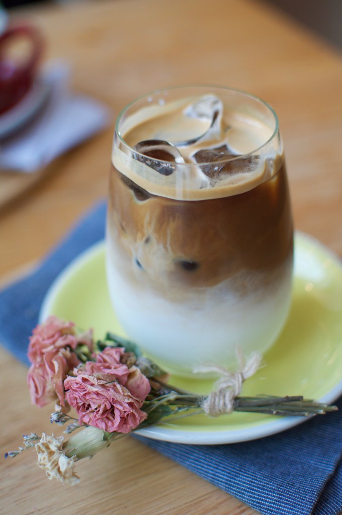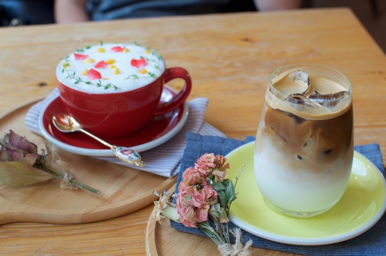 Lune H is a very pretty little cafe in Galmadong that has a sort of sweet flower shop concept. There are dried flowers all over decorating the walls and tables. And all the drinks are served with pretty little flower arrangements.