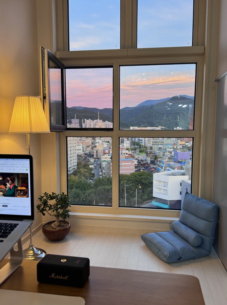 I came back to Korea again in the summer of 2023 to work for a study abroad program. At that time, I was given faculty housing on campus at the university. It was more or less fine except that because it was a public university, there were strict limits on how low the AC could go in order to preserve energy. So I spent much of that brutal Korean summer sweating in my room or escaping to cafes to find cooler AC elsewhere. But it did the job, and all I had to do was walk down three floors to my office each morning so no complaints in terms of convenience.